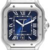 The Cartier Santos de Cartier watch is a stunning representation of luxury and craftsmanship. Its unique silver and blue color scheme enhances its allure, making it a coveted accessory for watch enthusiasts.