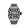 The RM11 Felipe Massa Sandblast 40mm showcases a sleek titanium case finished with a sandblasted texture, emphasizing its dynamic and bold persona. Each component has been designed with absolute precision, featuring a skeletonized dial that allows you to witness the intricate movement mechanism in motion. Renowned for its chronograph functionality, this watch ensures accurate timekeeping while pushing the boundaries of haute horology.
