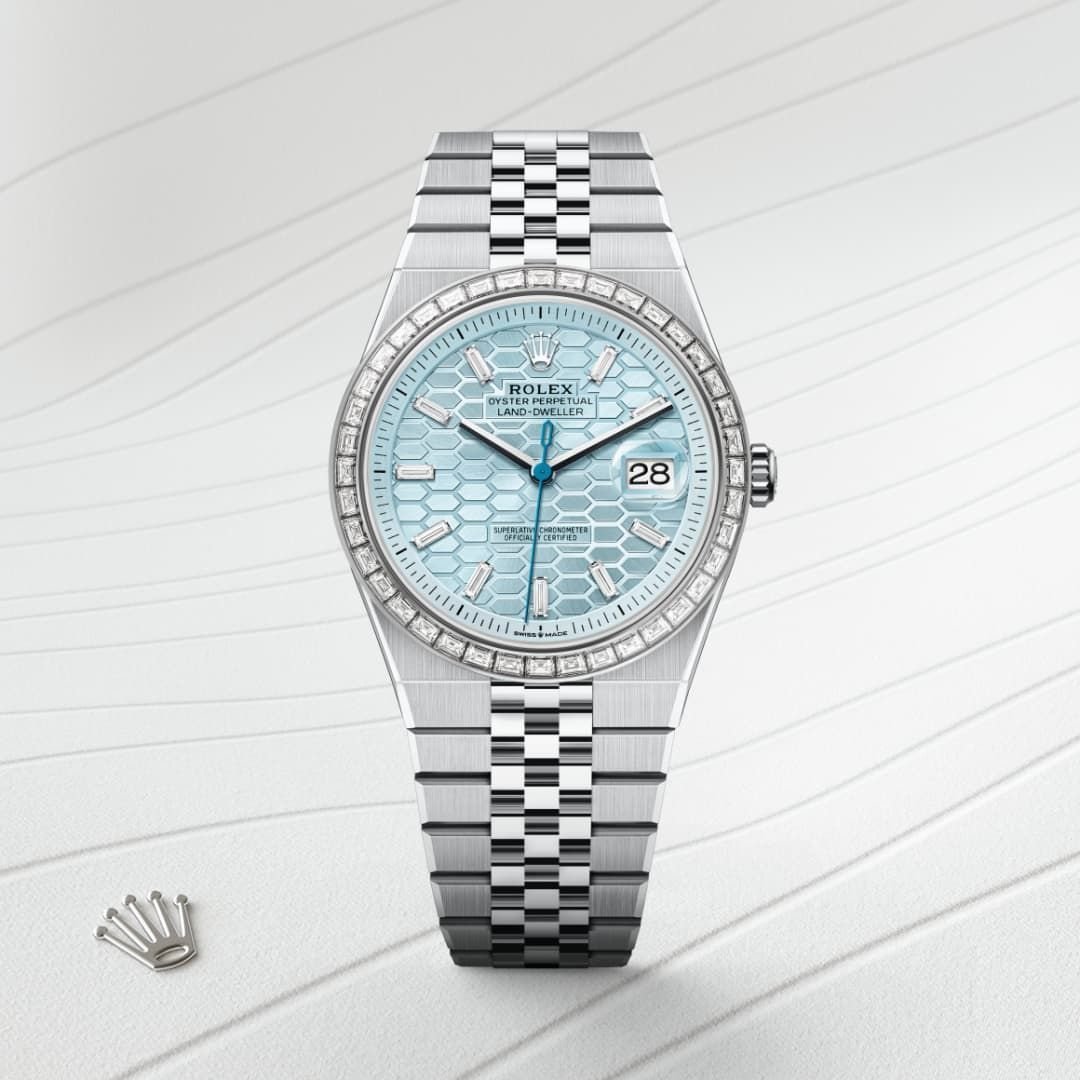 Rare and precious, platinum is striking for its silvery whiteness and vibrant luminosity. It is among the densest and heaviest metals in the world, distinguished by unique chemical and physical properties such as exceptional corrosion resistance. Paradoxically, it is also soft, elastic and highly malleable, which makes machining and polishing especially difficult, demanding an extremely high degree of skill. Rolex always uses 950 platinum, an alloy consisting of 950‰ (thousandths) platinum, painstakingly crafted in-house by the fine metalworkers at Rolex. The noblest of metals for the finest of watches.