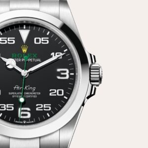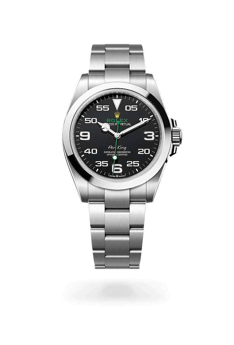 The Oyster Perpetual Air-King celebrates the aeronautical heritage of the original Oyster. It pays tribute to those for whom the sky was a new frontier of adventure, exploration and groundbreaking achievement – a springboard for new ideals. The Air-King symbolizes the privileged relationship between Rolex and flying during the golden age of aviation in the 1930s. It pays tribute to the pilots of the era and the first Oyster watches’ role in their epic story.