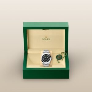 The Oyster bracelet is a perfect alchemy of form and function, aesthetics and technology, designed to be both robust and comfortable. It is equipped with an Oysterlock folding clasp, which prevents accidental opening and the Easylink comfort extension link, also exclusive to Rolex. This ingenious system allows the wearer to increase the bracelet length by approximately 5 mm, providing additional comfort in any circumstance.